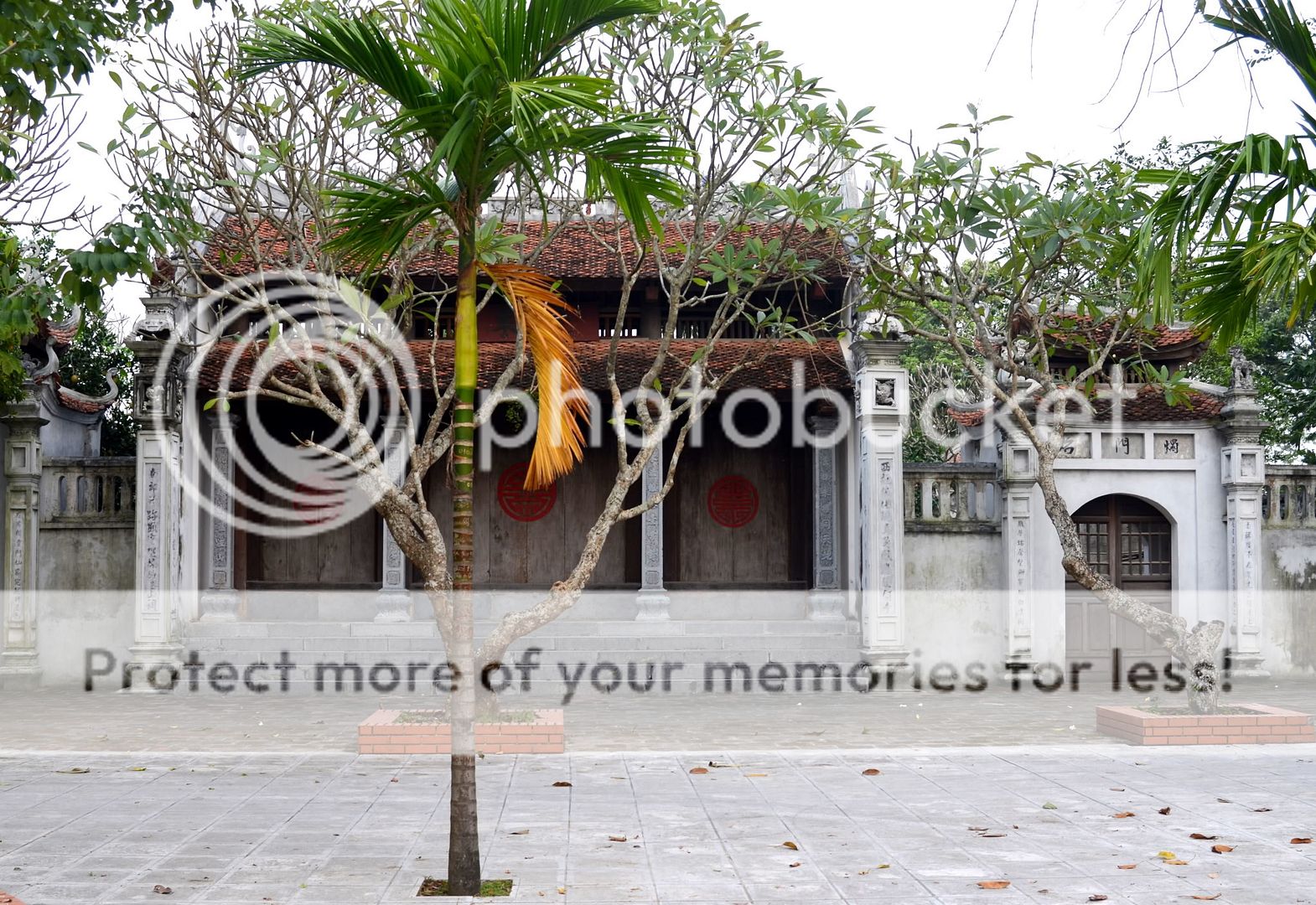 Cổng tam quan kiểu tứ trụ thay vì xây tường vách thì dùng bốn trụ
