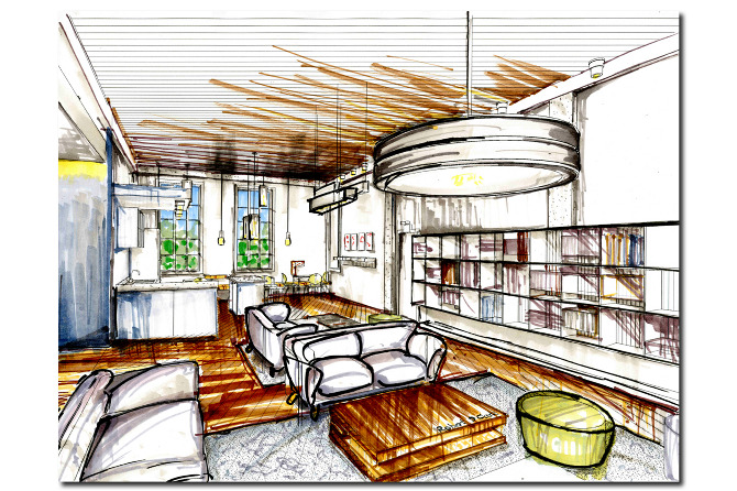 You can create interesting contrast with markers and with an eye for detail, you can visualize any kind of architecture material imaginable!