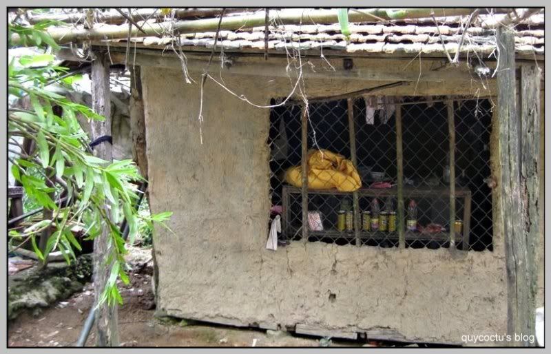 Một quán bán hàng mang phong cách đặt trưng của dồng bào dân tộc, nhà tranh vách đất