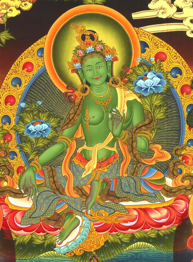 Hình dưới là Bồ Tát Văn Thù, vì cưỡi trên con sư tử lông vàng.